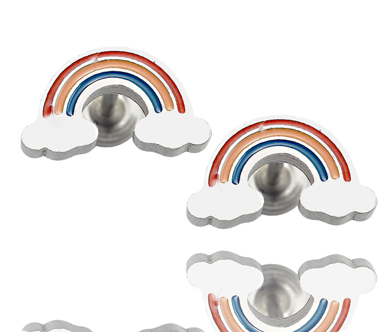 Oferujemy kolczyk do ucha w kształcie tęczy z kolorową emalią. Kolczyk wykonany jest ze stali szlachetne.