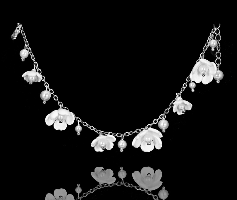 Ten elegancki naszyjnik to biżuteria idealna na wyjątkowe okazje takie jak ślub, zachwyca subtelnym połączeniem kwiatowych wzorów i perłowych akcentów. Każdy element został starannie zaprojektowany, by dodać blasku i uroku. Srebrna biżuteria z białymi kwiatkami i perłami doskonale podkreśli romantyczny charakter każdej ceremonii, nadając jej wyjątkowej elegancji. Idealny wybór dla przyszłej panny młodej, która pragnie dopełnić swoją stylizację subtelnym, ale efektownym akcentem.