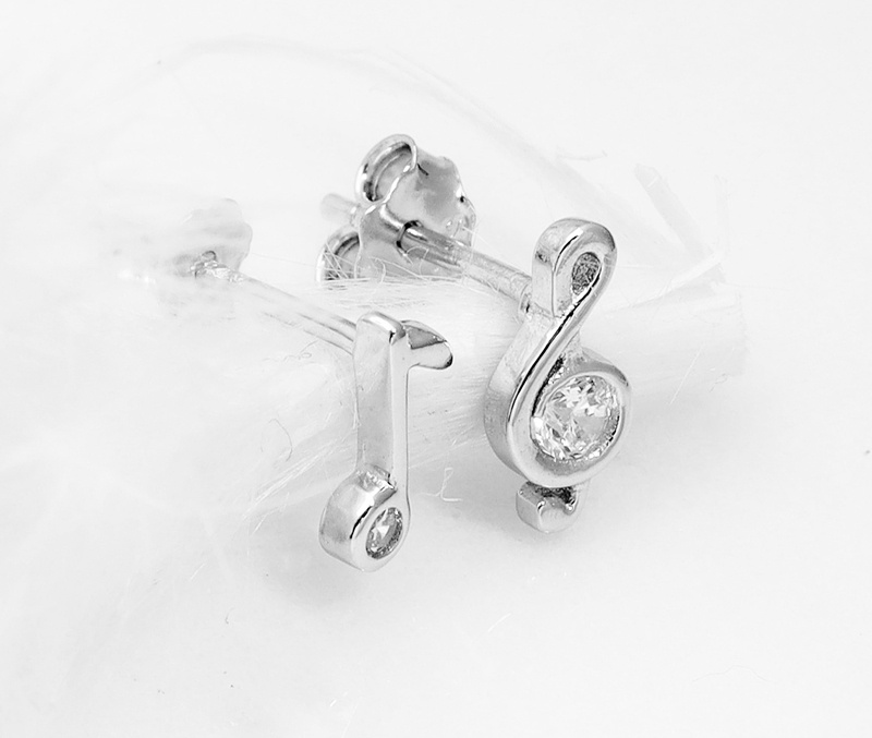 1861/2 kolczyki wkrętki z nutą i kluczem wiolinowym wysadzane cyrkoniami, srebro 925