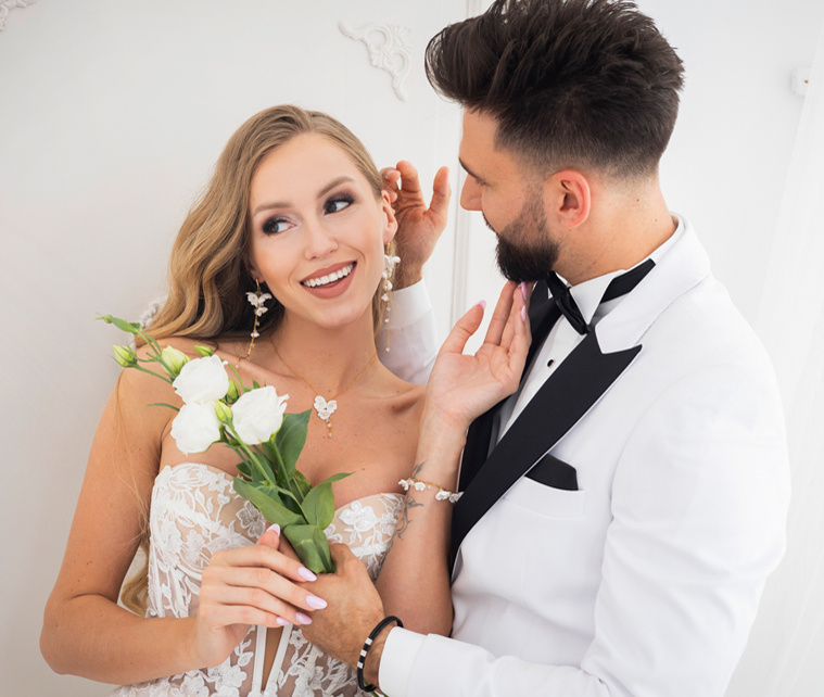 kolczyki ślubne pozłacane z kwiatuszkami i kryształami handmade 1816/2