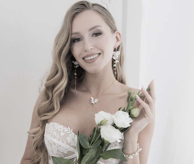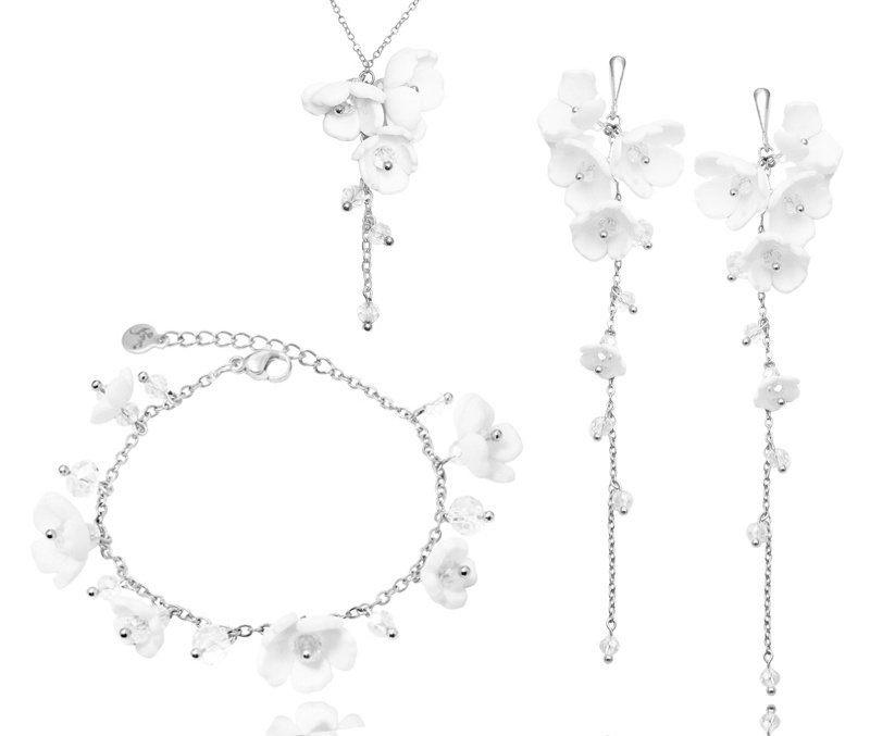 bransoletka ślubna srebrna 925 z kwiatuszkami i kryształami handmade 1816/2
