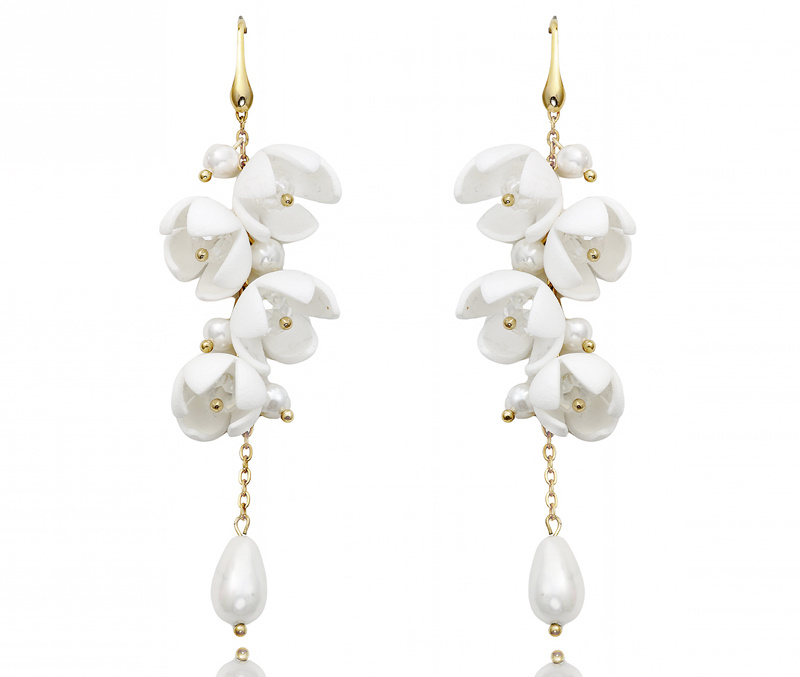 ręcznie robione kolczyki z kwiatami, kryształami i perłami 1816/5
