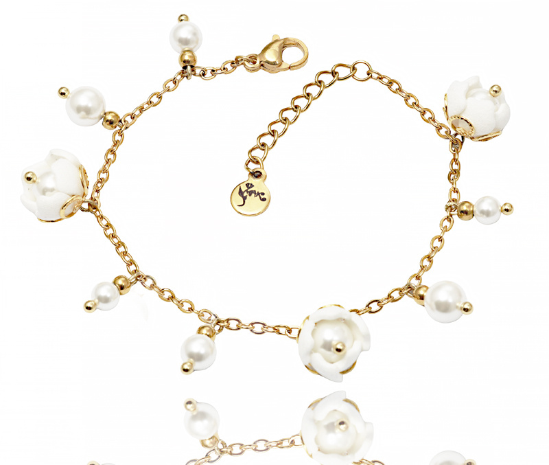 pozłacana bransoletka ślubna z perełkami i kwiatami 1816/8