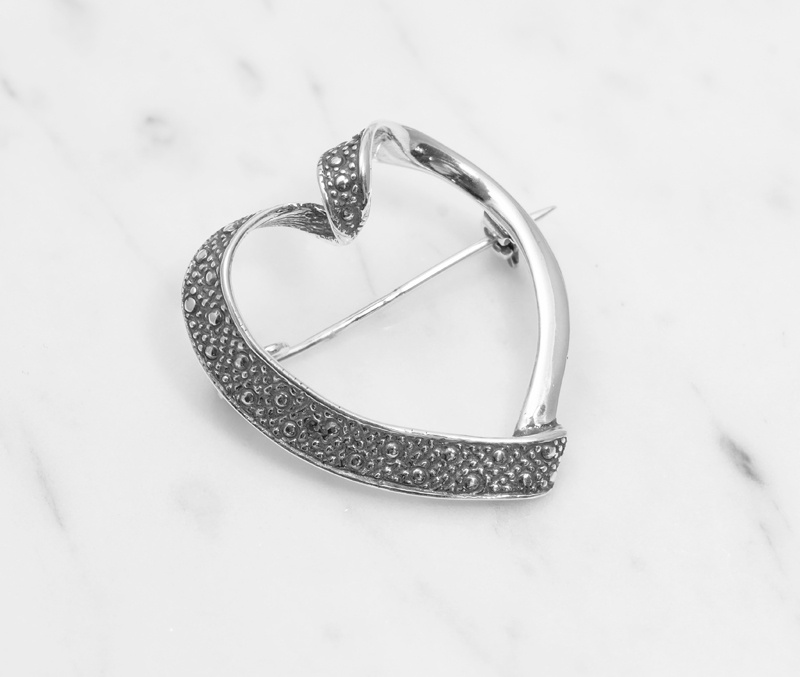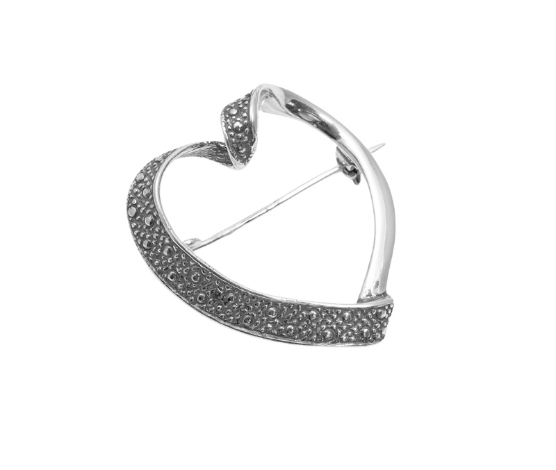 Elegancka broszka w formie serca, wykonana ze srebra próby 925. To ponadczasowy dodatek, idealny zarówno na co dzień, jak i na wyjątkowe okazje.