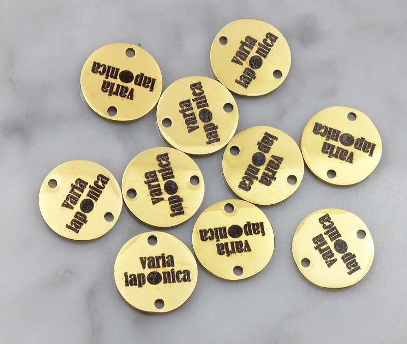 1866 Kółeczko blaszka grawerowana z logo złota stal szlachetna 10 mm dwa otwory