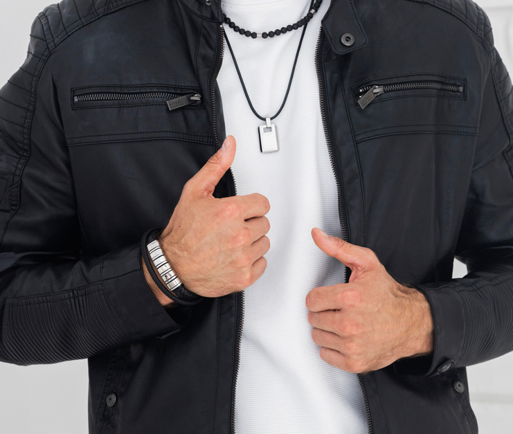 Bransoletka męska z grawerem skóra 1858/1 trzy przekładki