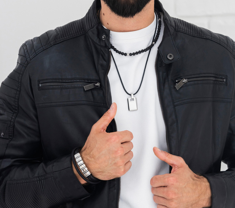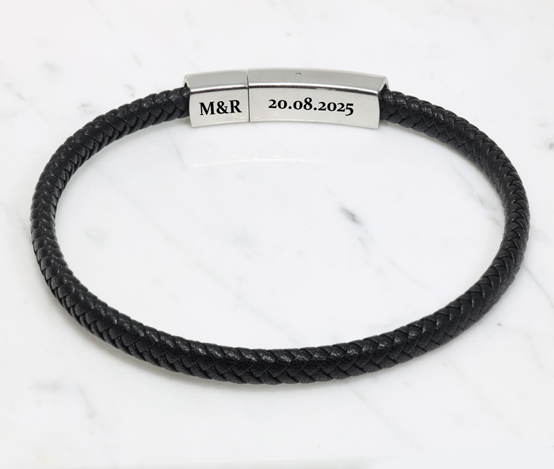 Bransoletka męska z plecionym rzemykiem to elegancki dodatek, który łączy w sobie skórę  oraz stal szlachetną. Wykonana z wysokiej jakości materiałów, zapewnia trwałość i wygodę noszenia. Zawiera subtelny grawer, który pozwala na personalizację, nadając biżuterii unikalny charakter. Długość bransoletki to 23 cm, z możliwością jej skrócenia, co zapewnia idealne dopasowanie do nadgarstka.