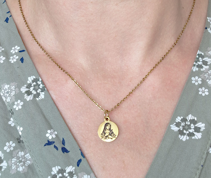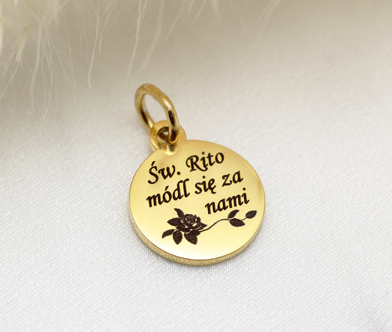 Piękny, delikatny medalik z wizerunkiem św. Rity to nie tylko wyjątkowa ozdoba, ale i symbol duchowego wsparcia, nadziei oraz wewnętrznej siły. Wykonany z najwyższej jakości stali szlachetnej pozłacanej, prezentuje wizerunek Świętej Rity oraz subtelny grawer z modlitwą: „Św. Rito, módl się za nami”.