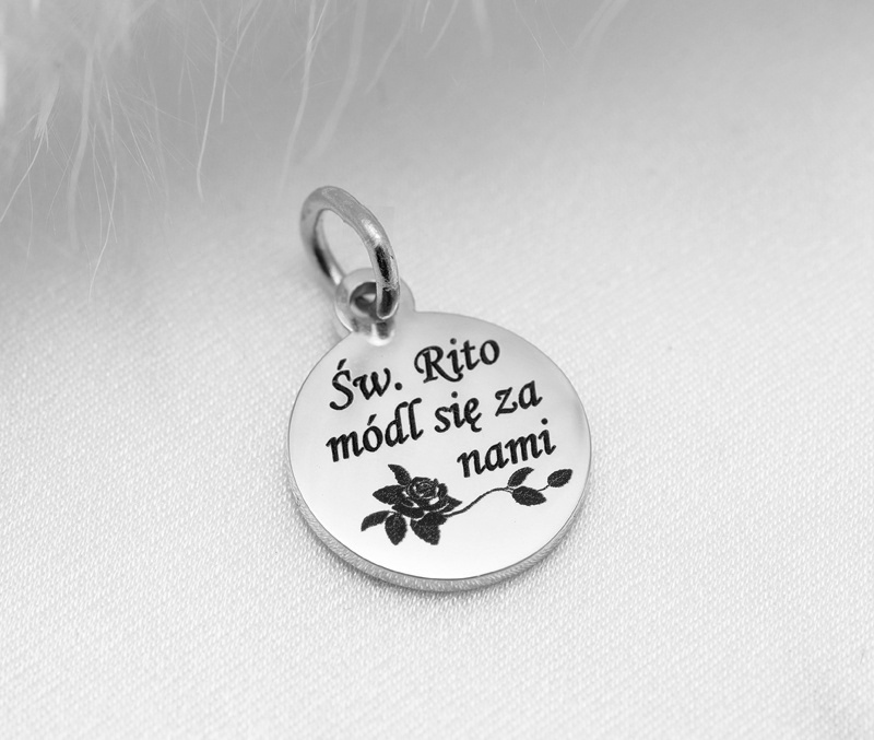 Piękny, delikatny medalik św. Rity to nie tylko wyjątkowa ozdoba, ale i symbol duchowego wsparcia, nadziei oraz wewnętrznej siły. Wykonany z najwyższej jakości stali szlachetnej , prezentuje wizerunek Świętej Rity oraz subtelny grawer z modlitwą: „Św. Rito, módl się za nami”.