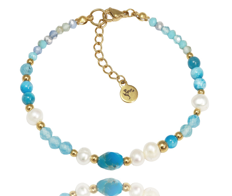 • Ten model został wykonany z  kamienia - kalcedon, perły naturalne, apatyt, kryształki w odcieniach błękitu