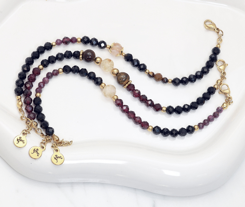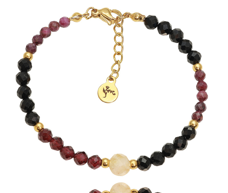 Dodaj energii i elegancji swoim stylizacjom dzięki unikatowym bransoletkom wykonanym z naturalnych kamieni szlachetnych: czarnego turmalinu, granatu, cytrynu, rubinu. Każda z bransoletek została ręcznie wykonana z fasetowanych kamieni, które pięknie odbijają światło, a wykończenie w kolorze złota nadaje im luksusowego charakteru.