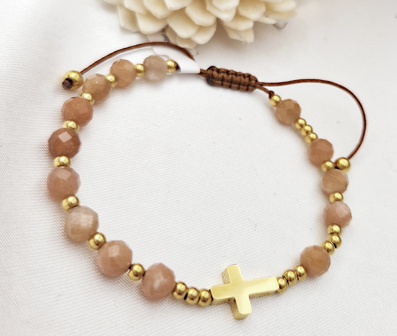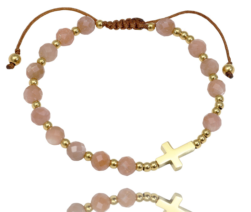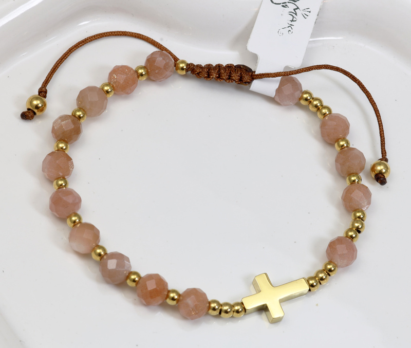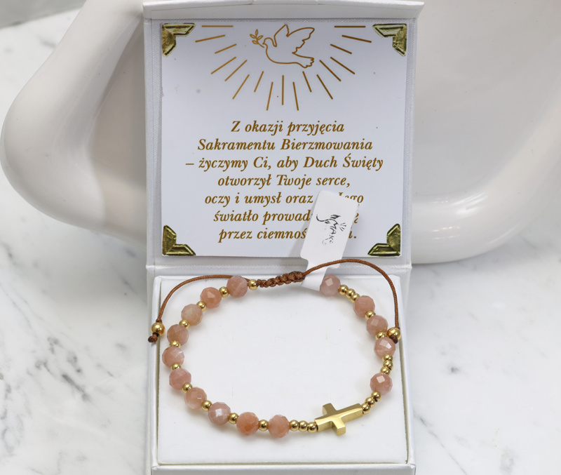 bransoletka różaniec stal złocona na sznureczku kamień słoneczny 1872/1