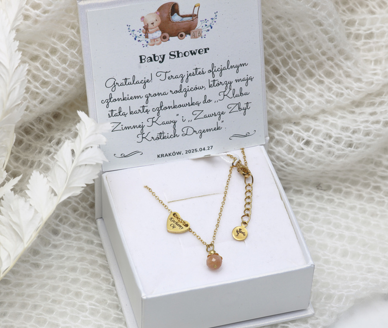 Naszyjnik na Baby Shower dla mamy z grawerunkiem pozłacana stal szlachetna 1874