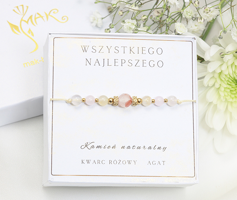 kamienie naturalne – kwarc różowy, agat.