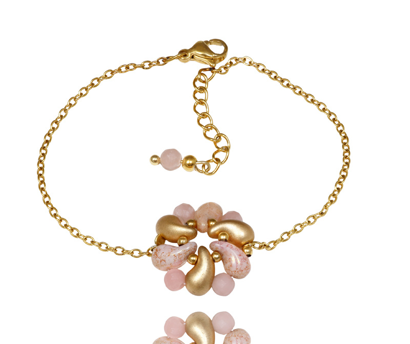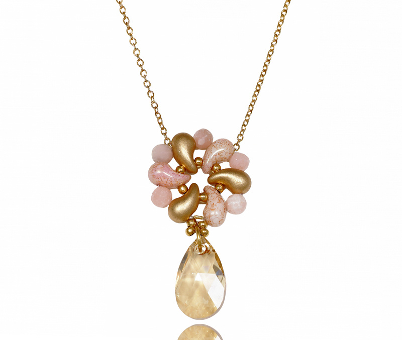 komplet pozłacany beżowo-różowy wyplatany ręcznie 1816/13