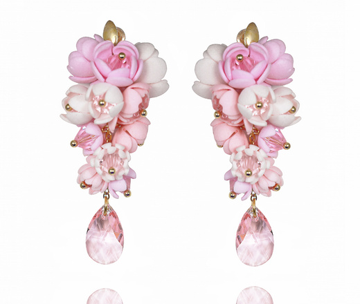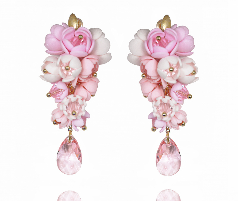 kolczyki pozłacane z kwiatuszkami i kryształami handmade 1816/12