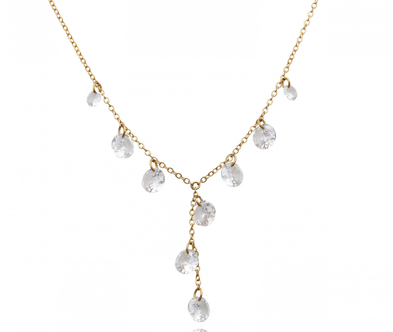 Olśniewaj subtelnym blaskiem! Ten elegancki komplet biżuterii z pozłacanego łańcuszka i delikatnych, mieniących się cyrkonii to kwintesencja ponadczasowej klasy i kobiecego wdzięku.