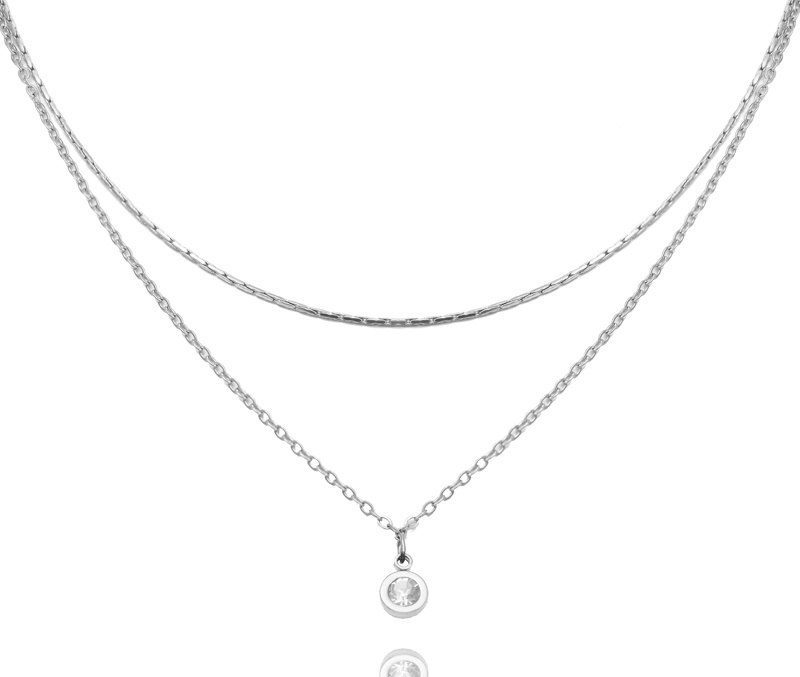 Olśniewaj subtelnym blaskiem! Ten elegancki komplet biżuterii z podwójnego łańcuszka i delikatnych, mieniących się cyrkonii to kwintesencja ponadczasowej klasy i kobiecego wdzięku.