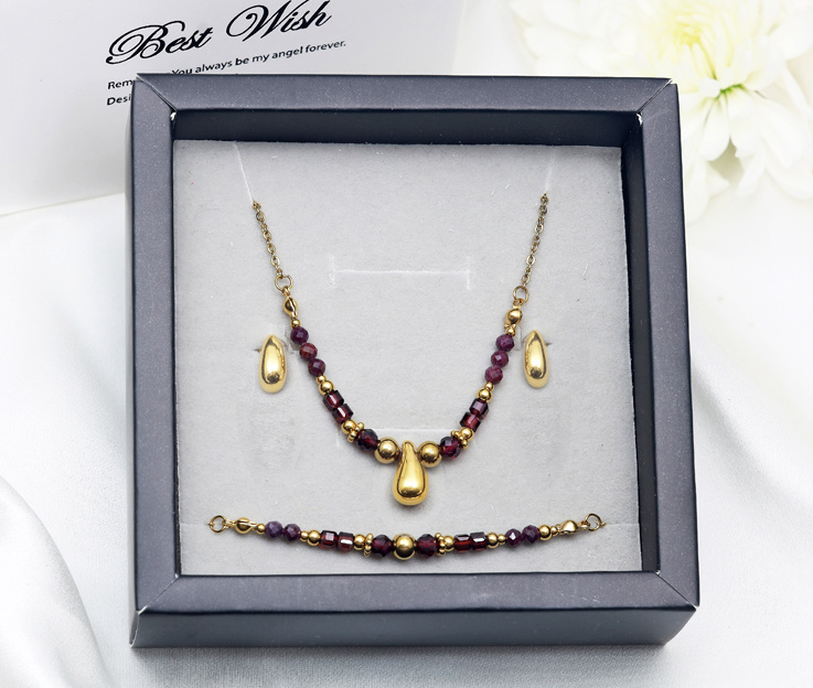 Zestaw zawiera: naszyjnik, bransoletkę, kolczyki