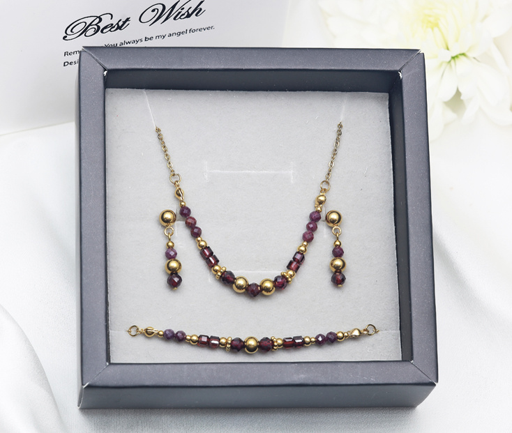 Zestaw zawiera: naszyjnik, bransoletkę, kolczyki