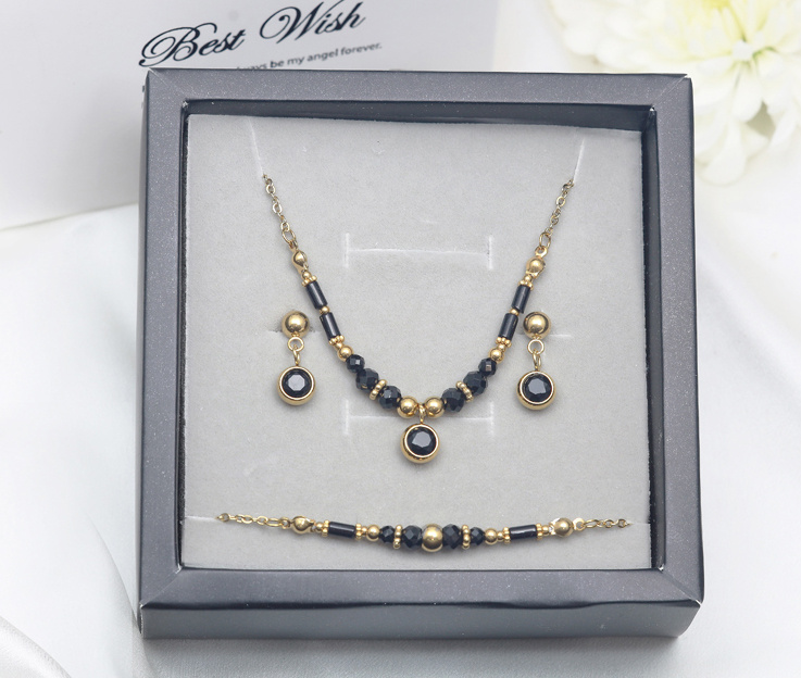 Zestaw zawiera: naszyjnik, bransoletkę, kolczyki
