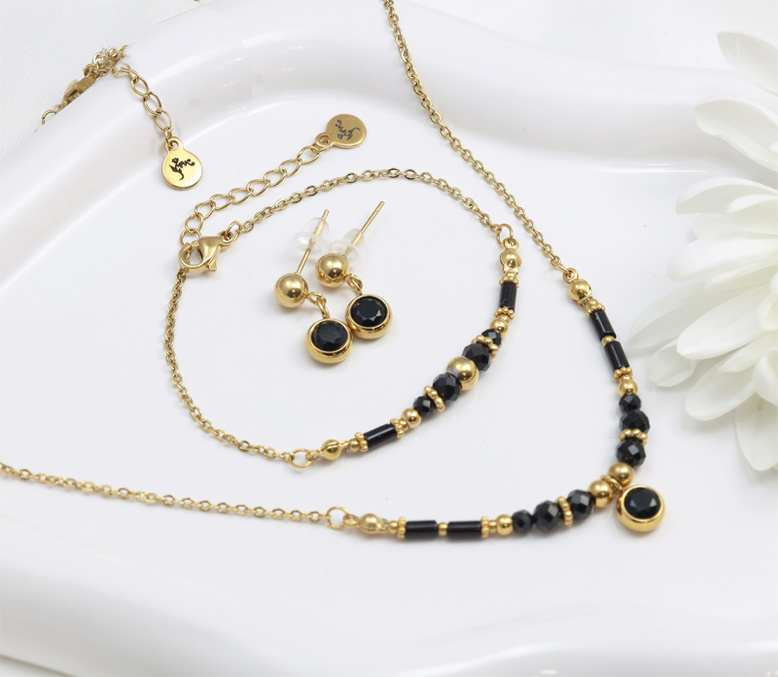 Odkryj wyjątkowe komplety biżuterii, stworzone z połączenia naturalnych kamieni oraz stali szlachetnej najwyższej jakości. Każdy zestaw składa się z naszyjnika, bransoletki i kolczyków, tworząc harmonijną całość idealną na co dzień i na specjalne okazje.