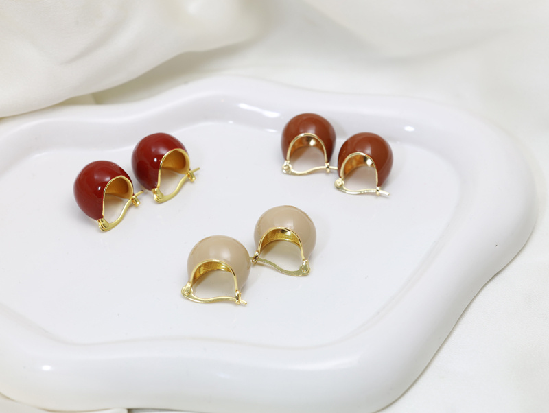 Kolczyki emaliowane duże dmuchane kremowe 1881