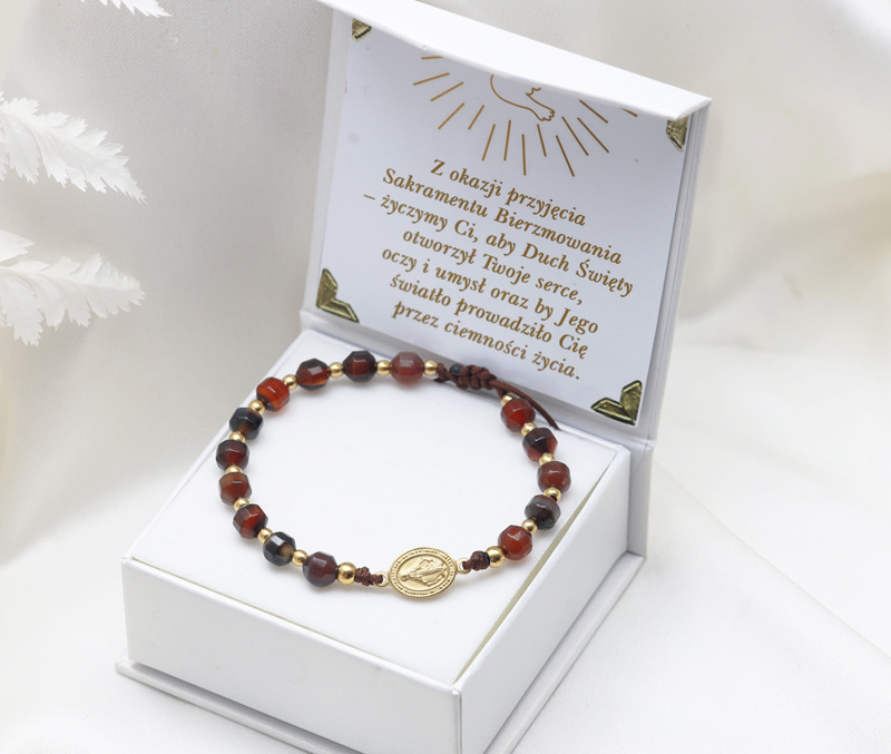 Wybierz bransoletkę różańcową, która nie tylko ozdobi Twoją dłoń, ale również będzie pięknym dodatkiem przypominającym o modlitwie różnicowej. Dzięki tej subtelnej ozdobie możesz modlić się w dowolnej chwili.
