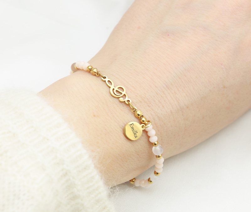 Bransoletka z kamieniami naturalnymi z grawerem klucz wiolinowy 1876/3