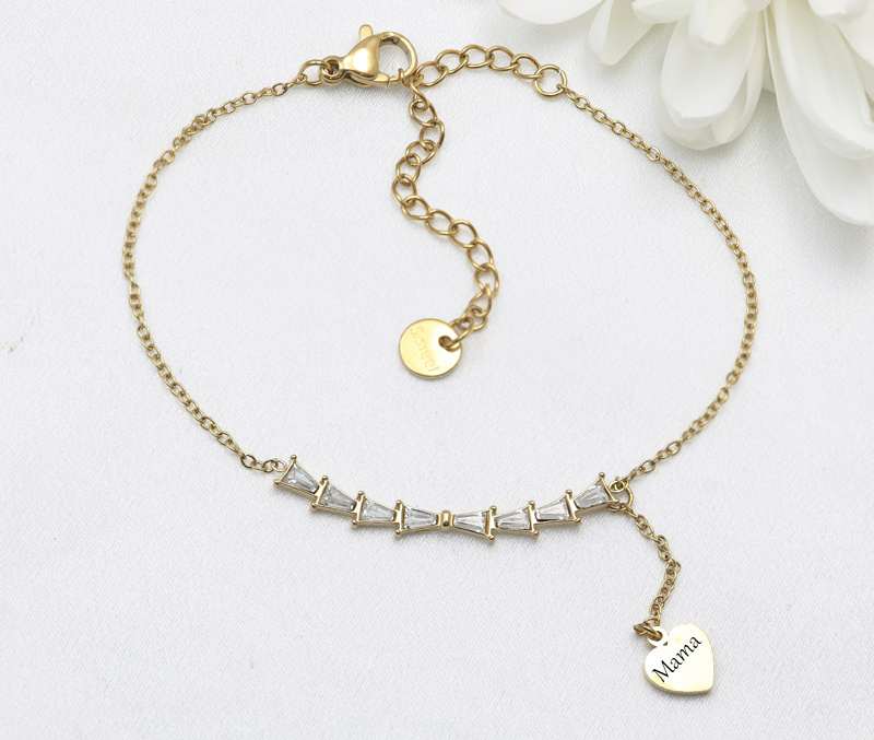 Bransoletka z wisiorkiem, którego zwieńczeniem jest serce z możliwością wykonania grawerunku. Łańcuszek został dodatkowo ozdobiony elementem wysadzanym cyrkoniami, co nadaje całości wyjątkowego blasku.