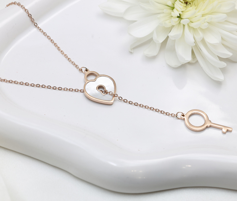 Elegancki naszyjnik kłódka z kluczykiem, serce wypełnione masą perłową. Elegancki dodatek na co dzień jak i na wyjątkowe okazje.