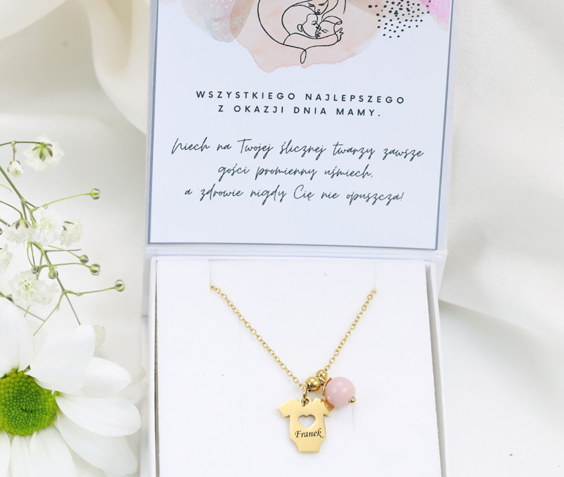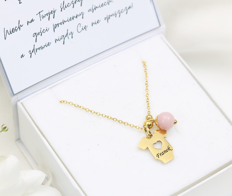 Złoty naszyjnik z możliwością personalizacji kształtu zawieszki i graweru to wyjątkowy prezent dla mamy. Dzięki opcji indywidualnego dopasowania kształtu zawieszki oraz unikalnego graweru, możesz stworzyć biżuterię, która najlepiej oddaje charakter i emocje najważniejszych chwil – od baby shower, przez narodziny dziecka, aż po Dzień Mamy. Elegancki design, wysoka jakość wykonania i trwały materiał sprawiają, że naszyjnik ten stanie się nie tylko piękną ozdobą, ale i sentymentalną pamiątką na długie lata.