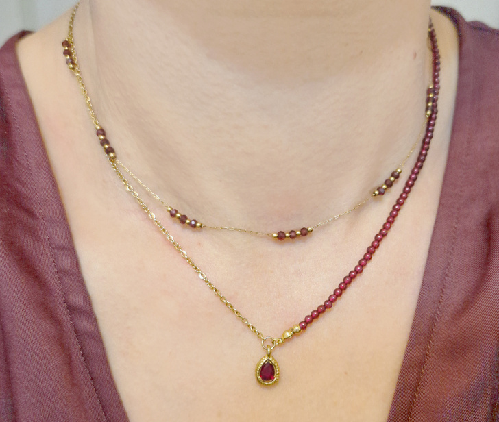 Odkryj odkryj wyjątkowy naszyjnik łączący w sobie trwałość stali szlachetnej i głębokie, bordowe odcienie granatu. To połączenie tworzy biżuterię, która emanuje ciepłem, elegancją i delikatną zmysłowością.
