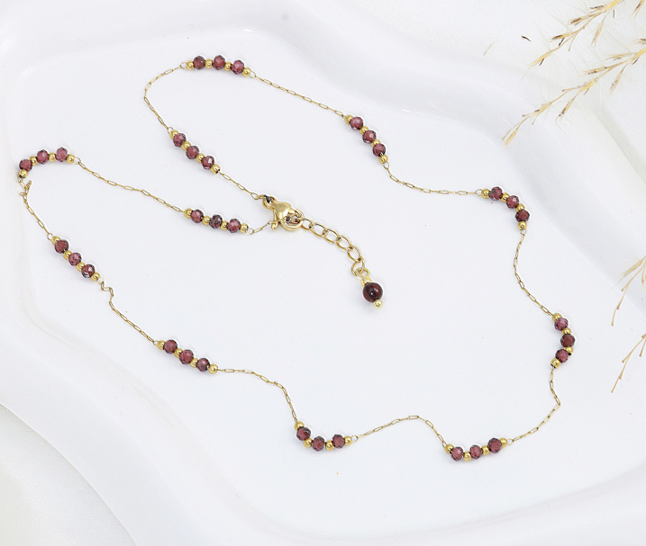 Naszyjnik granat z kryształkiem pozłacana stal 1886/4