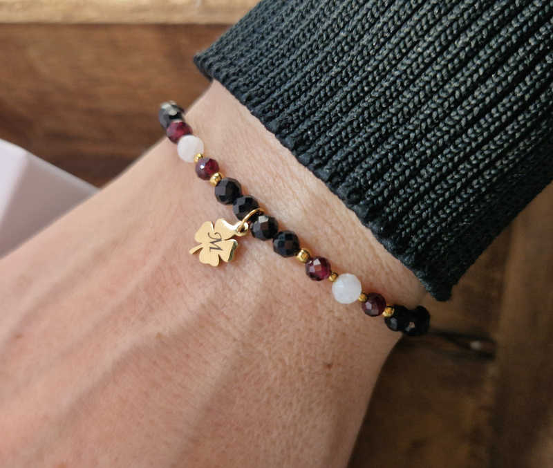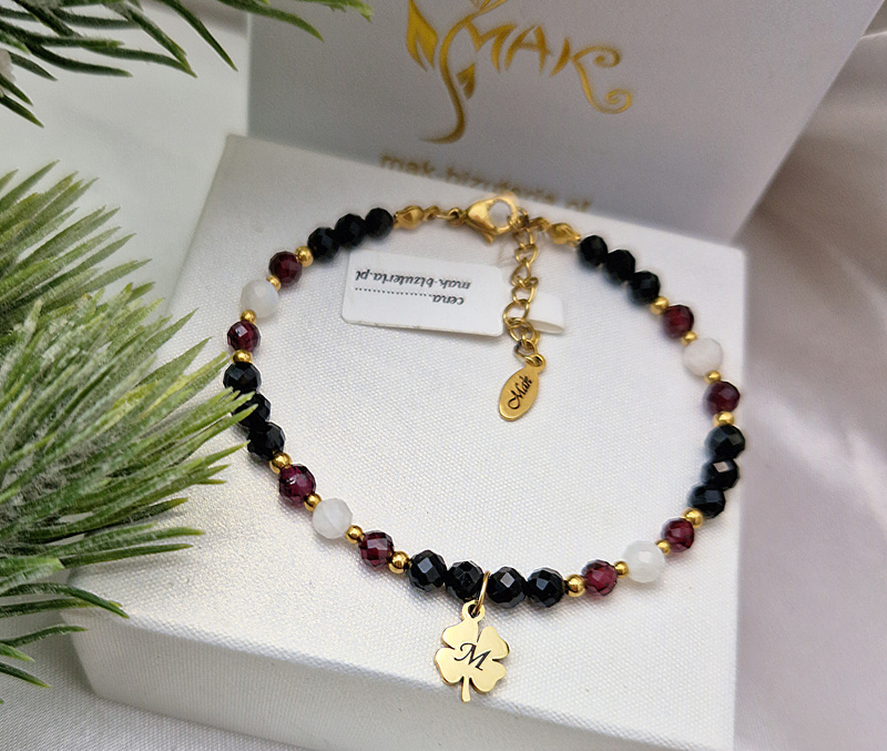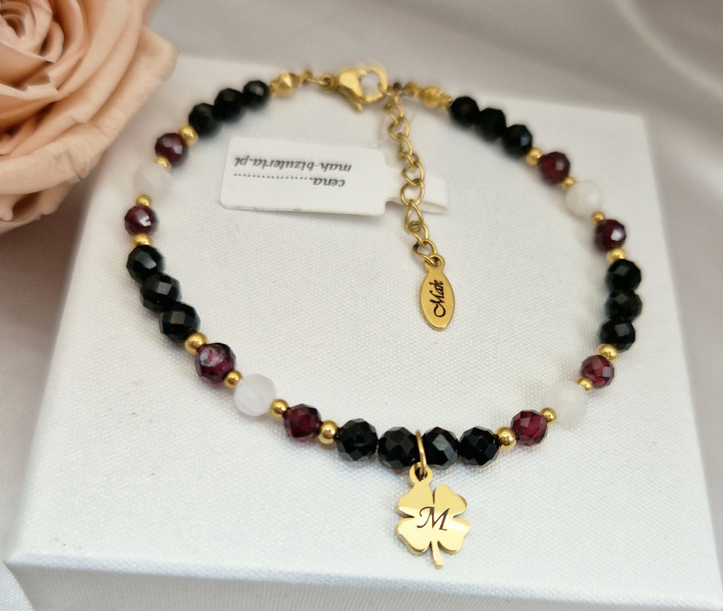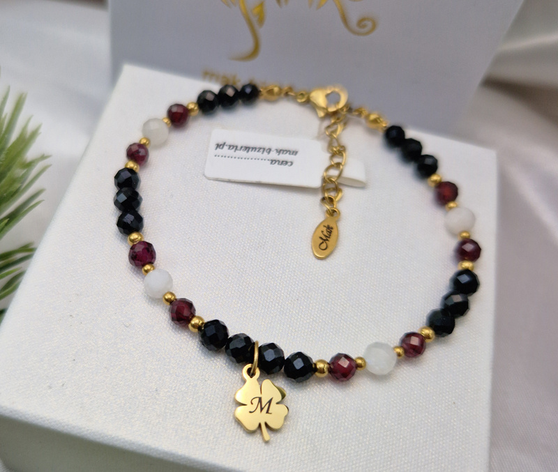 bransoletka damska koniczynka z grawerem czarny turmalin 1896
