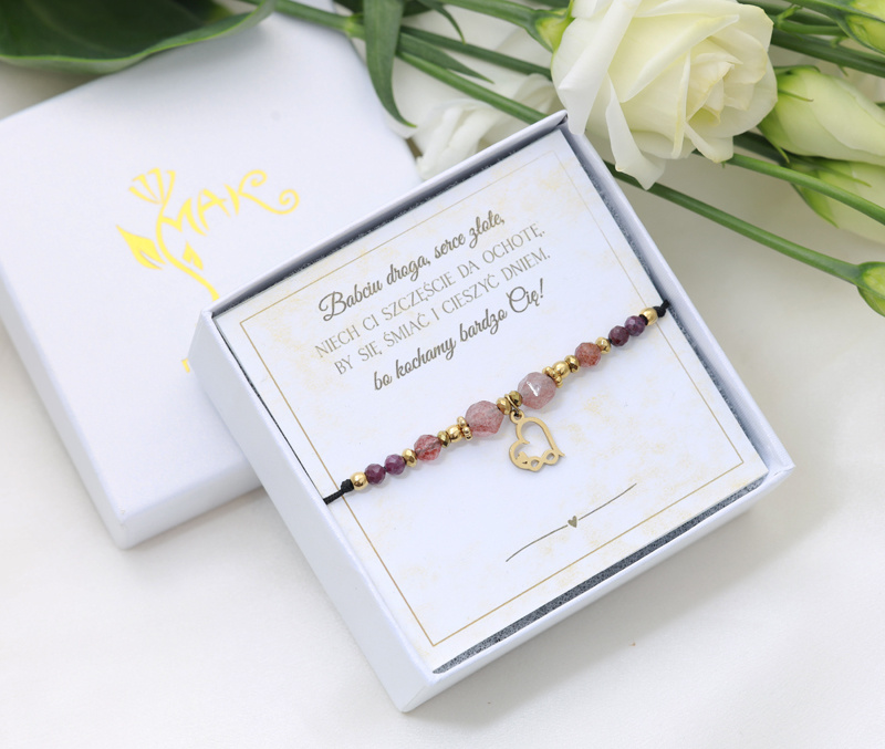 Bransoletka dla Babci kwarc truskawkowy pudełko z dedykacją 1897/2