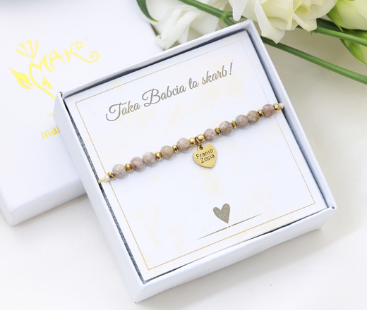 Delikatne bransoletki w złotym kolorze to symbol bliskości i ciepła, jakie Babcia daje każdego dnia. Subtelne barwy kamieni doskonale komponują się z klasycznym stylem, dzięki czemu biżuteria pasuje zarówno do codziennych stylizacji, jak i wyjątkowych okazji.