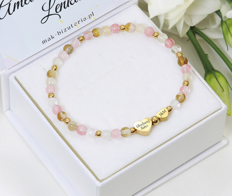 Bransoletka grawerowana z kamieni naturalnych z serduszkami 1898/2