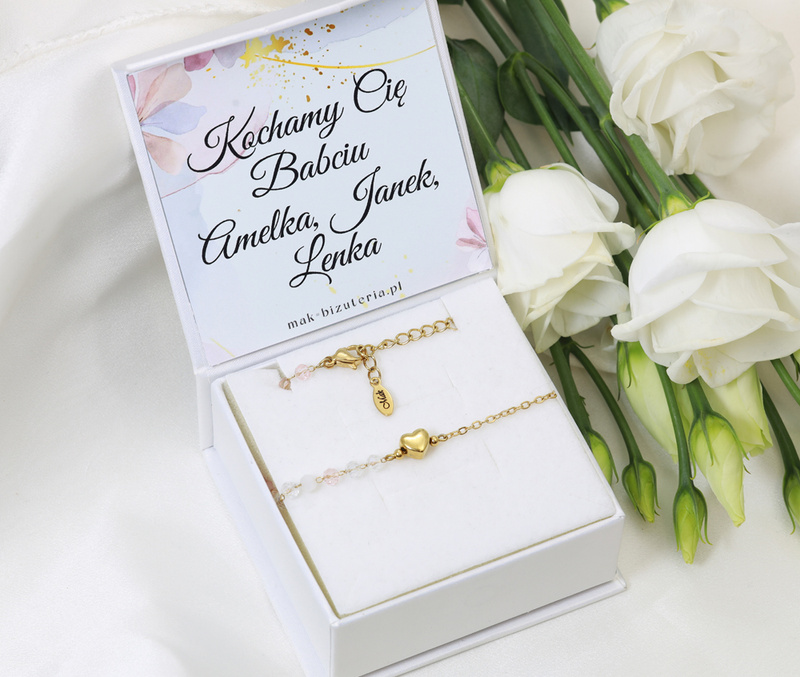 Eleganckie pudełko z dedykacją Zaskocz bliską osobę prezentem od serca, wybierz eleganckie pudełko z Twoją dedykacją. Tak łatwo możesz wywołać uśmiech! Rozmiar pudełka dopasujemy do biżuterii.