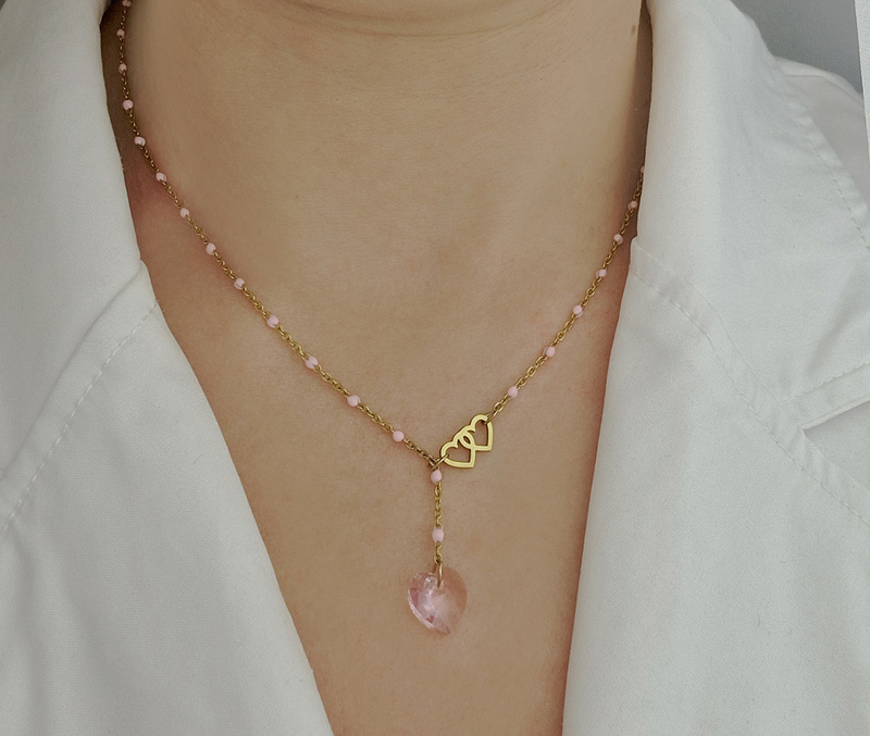 - kolor naszyjnika złoty zdobiony subtelną różową emalią,