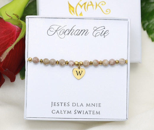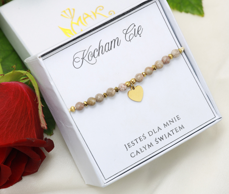 - elegancka bransoletka z naturalnych kamieni zapakowana w pudełko z dedykacją (po wykupieniu personalizacji tekstu jest możliwość zmiany napisu)