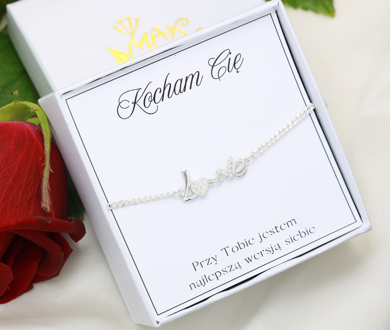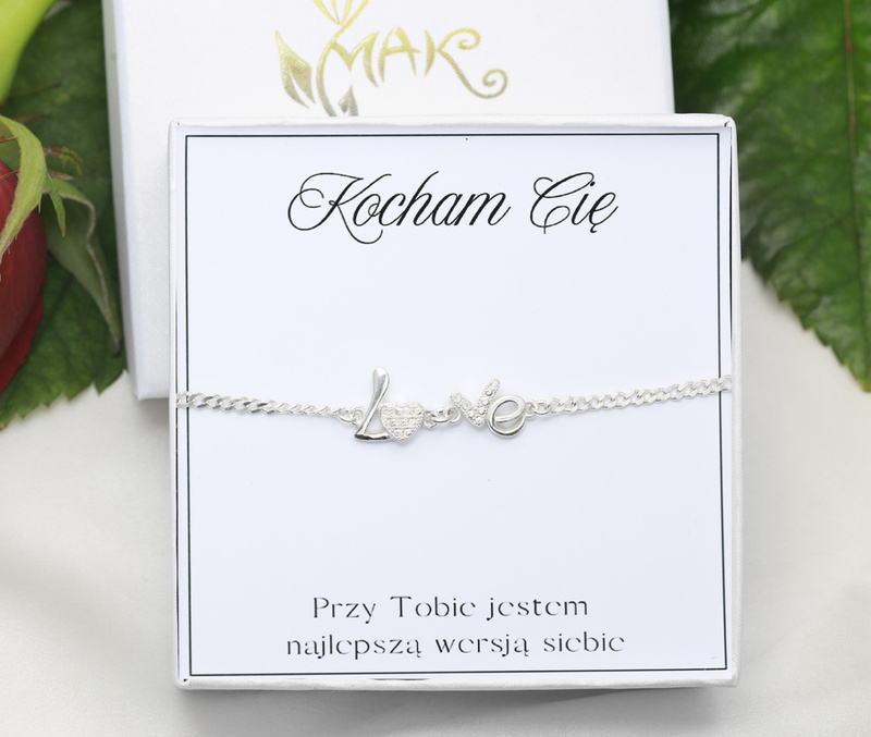 Przedmiotem oferty jest bransoletka wykonana ze srebra 925. Bransoletka na łańcuszku z sercem zapakowana w eleganckie pudełko z kolorową etykietą z cytatem. Idealny prezent dla ukochanej.