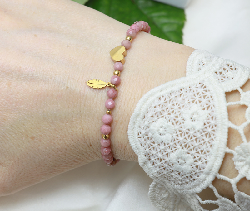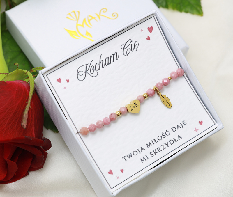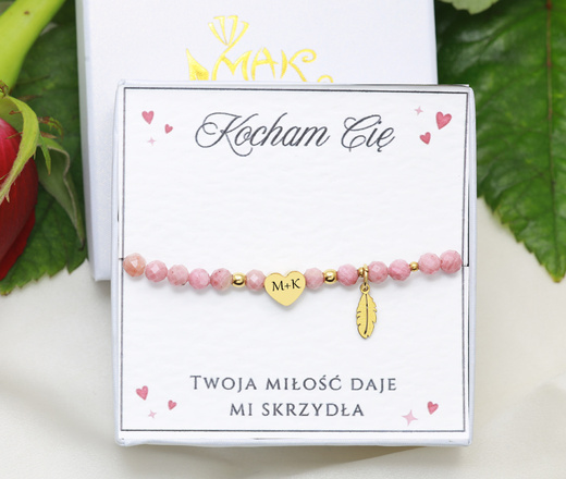 Bransoletka grawerowana z serduszkami z kamieni naturalnych 1899/7
