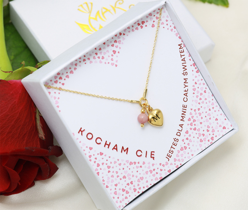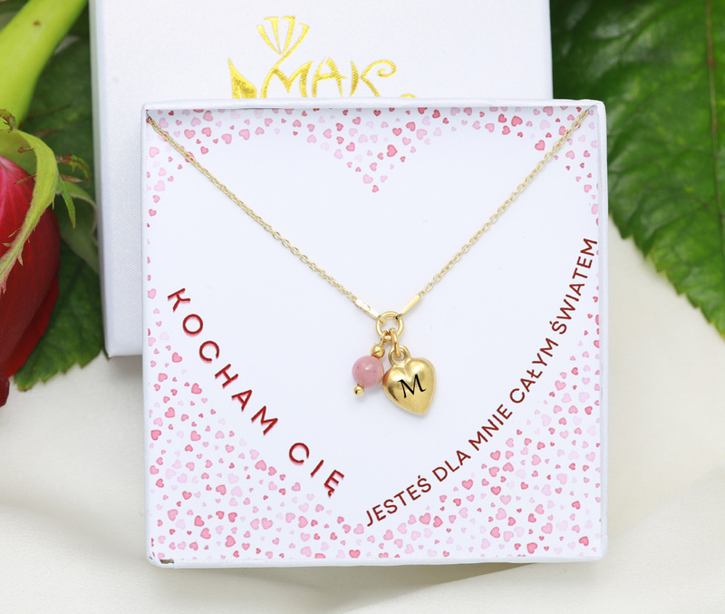 Naszyjnik z sercem grawerowanym, srebro 925 pozłacane z rodonitem 1899/10 zestaw walentynkowy
