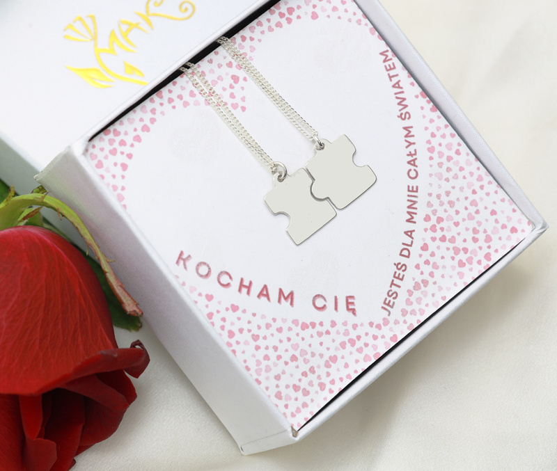 Zestaw dwóch naszyjników z symbolicznymi puzzelkami to sentymentalny prezent na walentynki. Elegancki design, wysoka jakość wykonania sprawiają, że naszyjnik ten stanie się nie tylko piękną ozdobą, ale i pamiątką na długi czas.