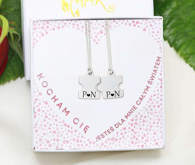 Naszyjniki z puzzlem 2 szt, srebro 925 zestaw walentynkowy 1899/13