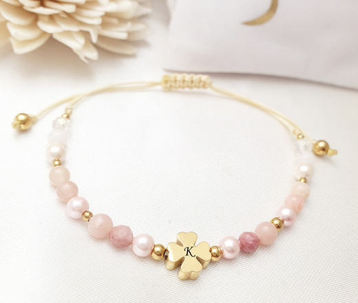 1780 różowa bransoletka pozłacana z grawerem i kamieniami naturalnymi Premium