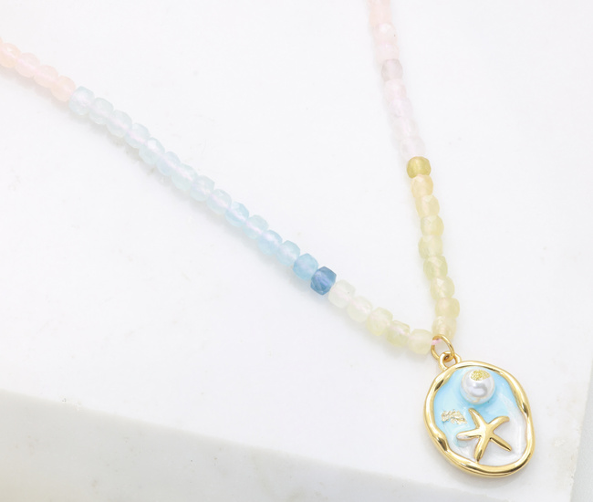 Naszyjnik z kamieniami naturalnymi pozłacana stal 1876/10
