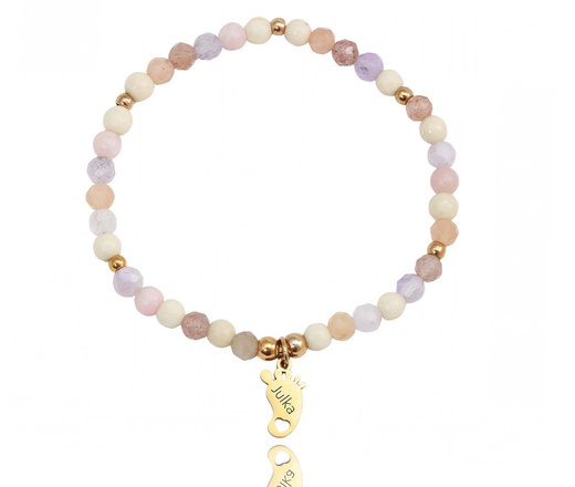 Bransoletka grawerowana i sercem ze stópkami kamienie naturalne 1889