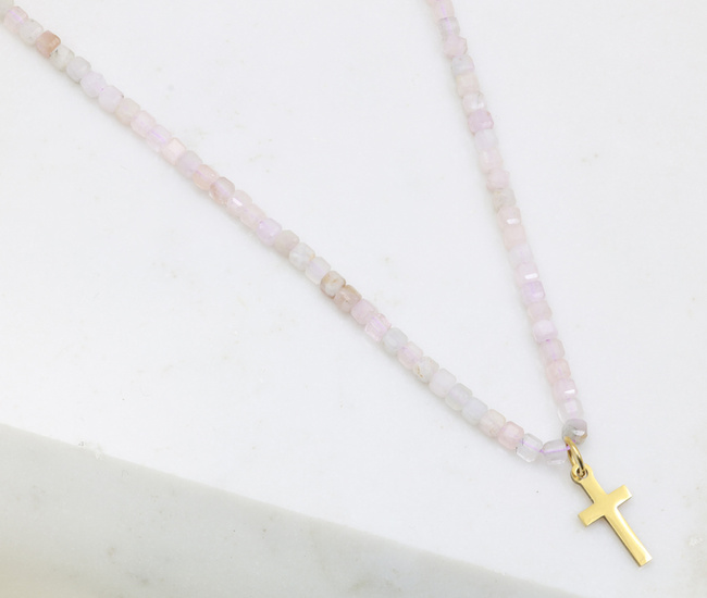 Bransoletka różaniec z krzyżykiem różowy - kostki rodonitu 1877/9
